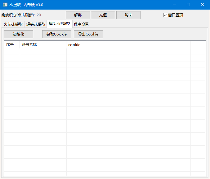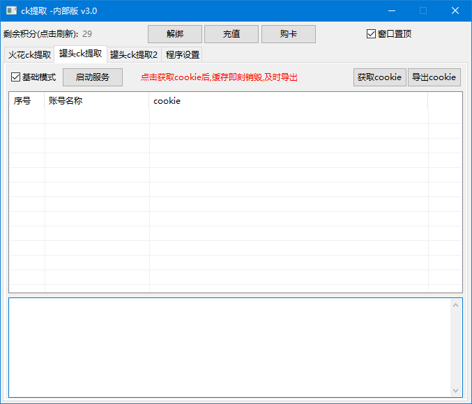2.获取ck 成功1条扣除1积分 不成功不扣分 随用随扣 无时间限制