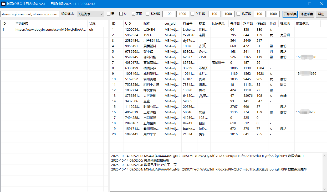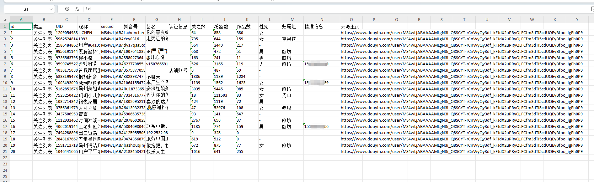 可采集公开列表的用户,设置隐私的无法采集,官方已封闭隐私接口,可导出excel
